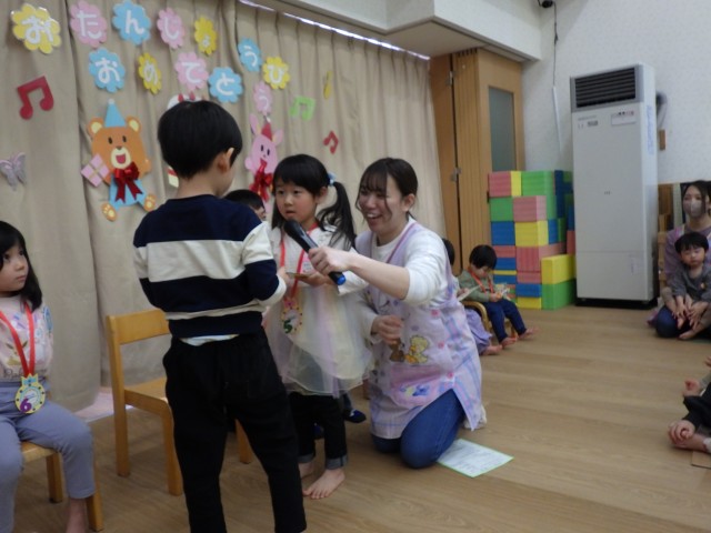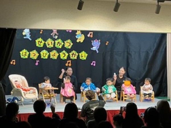 10月18日(土)は第19回生活発表会の日でした!当日はたくさんの応援と拍手をありがとうございました!この日の為に一生懸命練習に取り組んできた子どもたち!登園の際には「緊張するー!」とドキドキ緊張気味な表情の子どもたちが多く見られましたが、ステージでは笑顔が見られたりこれまでの練習を思い出しながら精一杯演目に臨む姿がとてもステキでした!そして演目が終了した後には「よかったー!」「成功できたー!」と安堵の表情が見られたとともに、頑張った達成感を味わう姿もたくさん見られました!身体を動かしたり、考えたり、勇気を出したり!この経験が子どもたちの心と身体の成長に繋がったことだと思います!今後も子どもたちが様々な活動で充実感や達成感を味わいながら活き活きと活動に熱中できるようサポートしていきます!