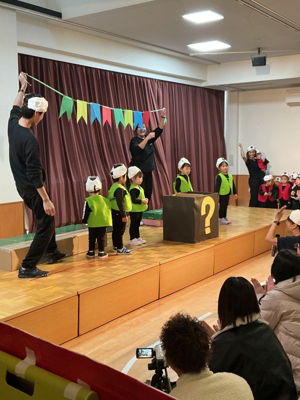 保育者の出し物ではプレゼントの中から可愛い動物が出てきてとっても嬉しそうに見ていましたよ!