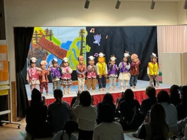 10月18日(土)は第19回生活発表会の日でした!当日はたくさんの応援と拍手をありがとうございました!この日の為に一生懸命練習に取り組んできた子どもたち!登園の際には「緊張するー!」とドキドキ緊張気味な表情の子どもたちが多く見られましたが、ステージでは笑顔が見られたりこれまでの練習を思い出しながら精一杯演目に臨む姿がとてもステキでした!そして演目が終了した後には「よかったー!」「成功できたー!」と安堵の表情が見られたとともに、頑張った達成感を味わう姿もたくさん見られました!身体を動かしたり、考えたり、勇気を出したり!この経験が子どもたちの心と身体の成長に繋がったことだと思います!今後も子どもたちが様々な活動で充実感や達成感を味わいながら活き活きと活動に熱中できるようサポートしていきます!