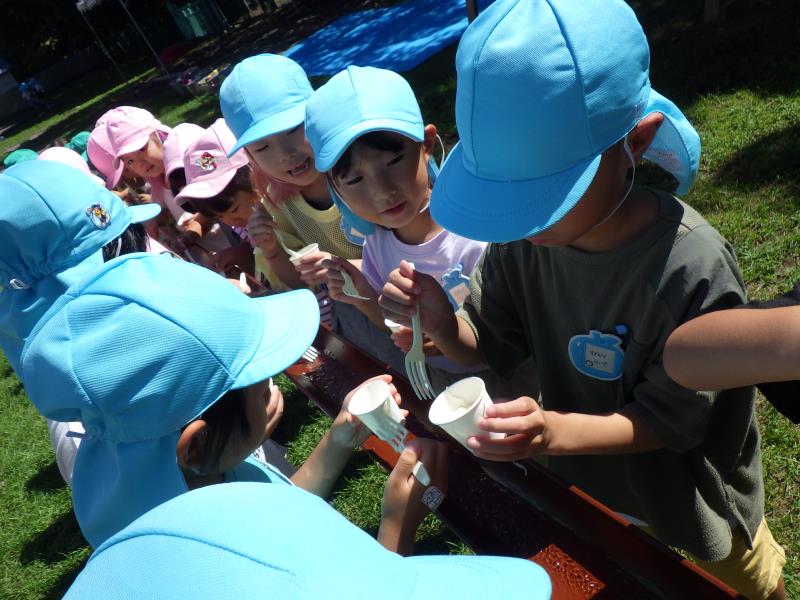 両チームお腹がすいたところで、くるみ保育園のお友達と一緒にお弁当の時間にしました!お弁当をみんなで見せ合いながら、「かわいいでしょ」「見てみて~」「おいしい!」と大満足な様子♪食べていると、くるみ保育園の園長先生からのクイズ大会が開催され、正解していくみんなにキャンディのご褒美!午後は見切れなかった動物を見学に行きました。やはり爬虫類館は人気ですね…真剣に見入っていました。帰りのバスはみんなゆったりしながら帰りましたとさ!