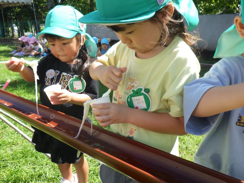 そして白チームは、「たくさん動物を見て、美味しいお弁当を食べるぞ~~!」と出発。モンキーハウス、ぞう、子ども動物園にも行ってみました。うさぎに触れると思ったらその姿が無く残念な様子。気を取り直して両生類館で動物たちを目の当たりにすると・・・テンションMAX!!!!「うわ~~!ヘビが大きい!」、全く動かずにいるワニを見て「お人形さん??、おもちゃみたいだよ」の声も(笑)天津爛漫な姿の子どもたちでした。