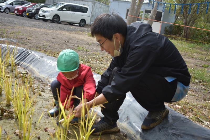 「先生!採っていいの?」「大きい!ながい!」など大きさや形を見て