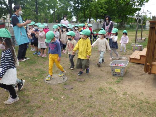 6月5日、小学校の振替休日を使ってみんなで屯田公園まで遠足に行きました!公園の広さや遊具の多さもあり、実は4月から子どもたちの中で行きたい公園の1つになっていました。片道3キロとやや距離はありましたが、事前にみんなで作った“お散歩ビンゴ”を楽しみながら公園まで頑張って歩けました。ビンゴのマスは自分で公園までの道のりを想像しながら自分たちで切り貼りをして設定。歩きながら「ビンゴきたー!」「もう3ビンゴだ!!」と子どもたちで盛り上がっていました!