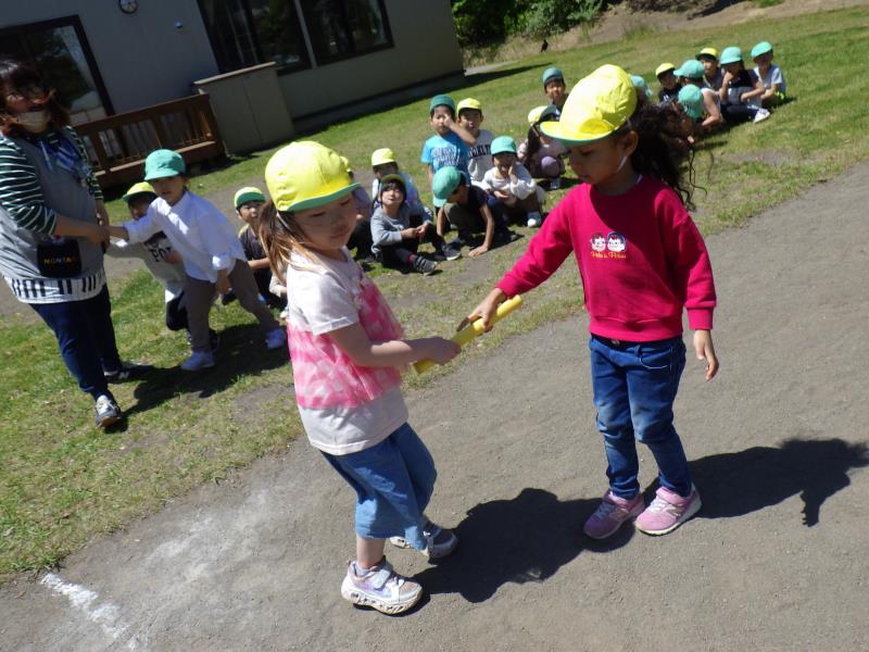 バスに乗って向かったのは百合が原公園。始めに乗ったリリートレインでは、「レッツゴー!」の合図で列車が出発。「お花キレイ!」「ラプンツェルの塔見える!」と大喜びの様子でした。列車を降りた後はみんなのお待ちかね、おやつタイム!「何持ってきたの?」「うまい棒沢山持ってきた!」など大盛り上がり!その後も大きな遊具で身体をたくさん動かして遊んでバス遠足を大満喫しました!