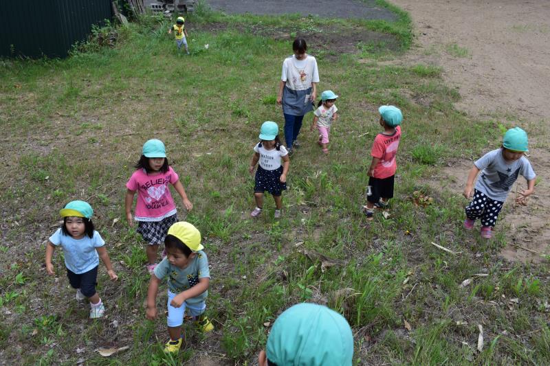 次の朝、起床は六時半。まだ眠たい子がいるかな?と少し心配していましたが、全員スッキリと目覚め、外でラジオ体操をした後、近隣のお散歩まで行きました!